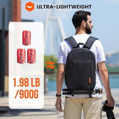 【Luz y compacto】 El tamaño externo es de 37x14x28.5 cm; Capacidad total: 12 litros; El peso de esta pequeña mochila fotográfica es de solo 0.83 kg. Ligero y cómodo para transportar para su fotografía de viaje diaria, de viaje o pequeño.