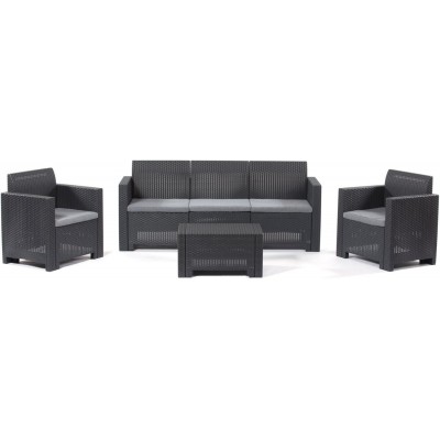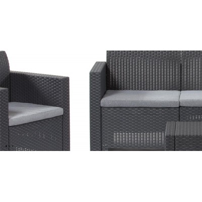 • Muebles de jardín para 5 personas en diseño en grafite de ratán, sofá, 2 sillones, mesa de contenedores, cojines incluidos