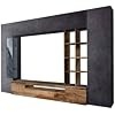Muro de dmora equipado con sala de estar, hecha en Italia, con luz azul, base de televisión y unidad