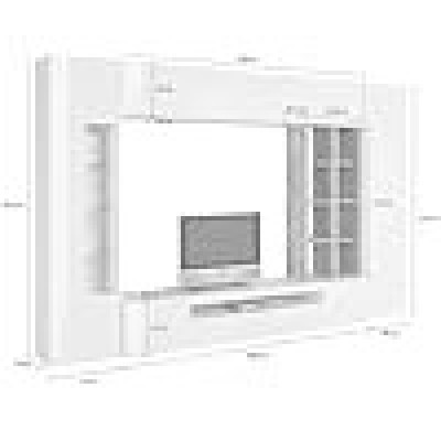 Muro equipado con sala de estar: juego de dormitorio fijo completo, una unidad de pared de pared vertical y horizontal, estantes y paredes combinadas con la pared: la estructura es blanca brillante y con detalle de la librería de concreto