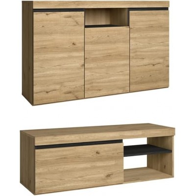 página de título > Skraut Home - Sala de estar Natural Set, comedor, muebles auxiliares, móvil -TV 120 cm de roble buff