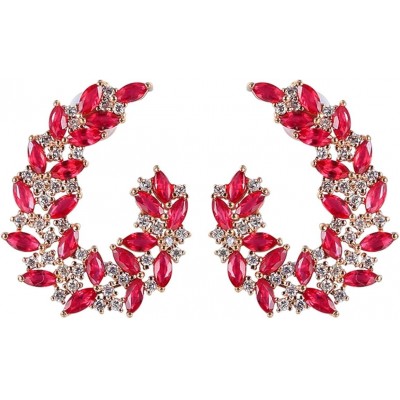 Epinki 18k Pendientes de oro para mujeres, Ruby Laboratory 3.22ct con Moissanite 0.61CT Jewelry Brid