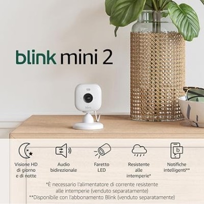 Blink Mini 2 | Cámara de video de seguridad inteligente, complemento, con visión nocturna de color H