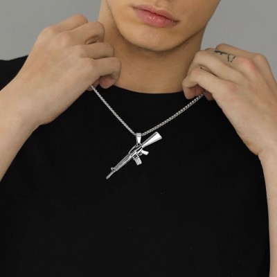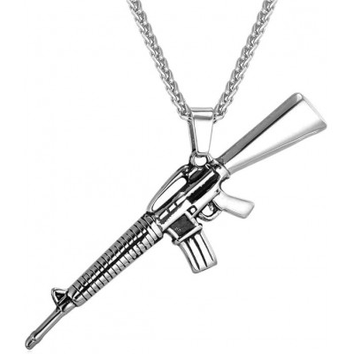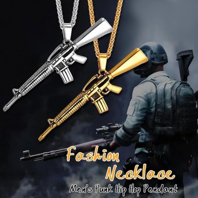 • ♥ Diseño ♥ Collar colgante para hombres, pistola M16 en cubos de pistola, muy fría y joya de botín.