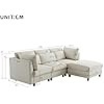 página de título > Hogar y cocina > Kecduey 3 asientos en forma de L, diseño moderno, muebles acolchados, esquina con reposapiés y F