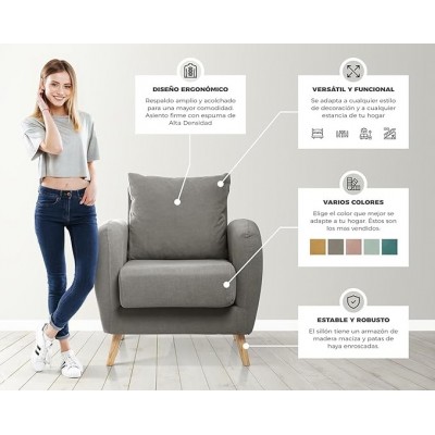 página de título > Hogar y cocina > SuenosZzz- Sillon CIES butacas para Dormitorio Nórdica. Sillón tapizado Acualine Antimanchas, Color