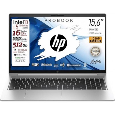 ✅ Laptop Technical Features: HP 450 G10 Probook model with Intel Core I5-1334U 10Core CPU CPU, UP TO 4.60 GHz, DDR memory 4 16 GB (2 x 8 GB SO-DIMM) expandable up to 64 GB, internal disk PCI NVME SSD from 512GB, HD color web cam, Svga Intel Iris XE, including digital fingerprint reader, ENTRY COMBO MICROPHONE HEGE, HP PREMIUM QWERTY HP keyboard liquid resistant and infiltrations with numerical keypad