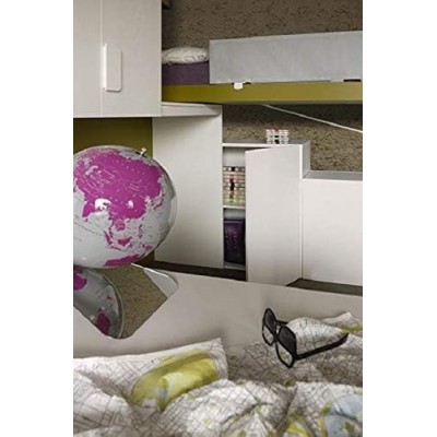 • Completo con: n. 1 bloqueador de bloqueo y n. 1 escritorio deslizante en Boiserie; norte. 1 escala de contenedor; norte. 1 Armario de puente con puertas; norte. 1 estantería colgante; norte. 1 mesa de noche con ruedas, dos cajones.
